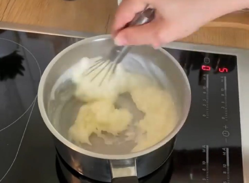 ابتدا شکر و آب را به شیر گرم افزوده و روی حرارت قرار می دهیم تا شکر کاملا حل شود سپس آرد را به تدریج افزوده و با همزن دستی خوب مخلوط می کنیم تا یکدست شود در نهایت وانیل را هم می افزاییم زمانی که کرم به غلظت ماست چکیده رسید آن را از روی حرارت برمی داریم.