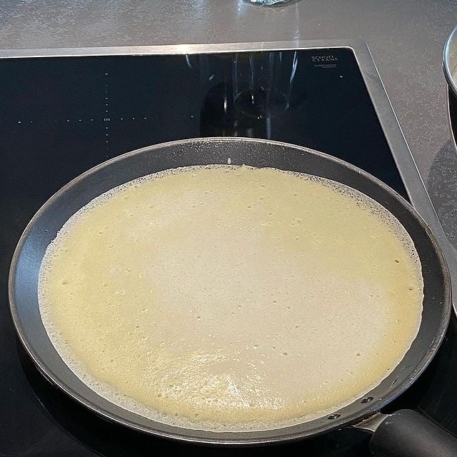 تابه مناسبی را روی حرارت می کذاریم و تابه را چرب می کنیم یک ملاقه بزرگ از مواد کرپ داخل تابه ریخته و تابه را تکان می دهیم تا مواد کاملا پخش و نازک شود. بعد از اینکه پخته شد برداشته و تا انتهای مواد به همین شکل عمل می کنیم . و بعد از پخت همه کرپ ها را روی هم می چینیم.